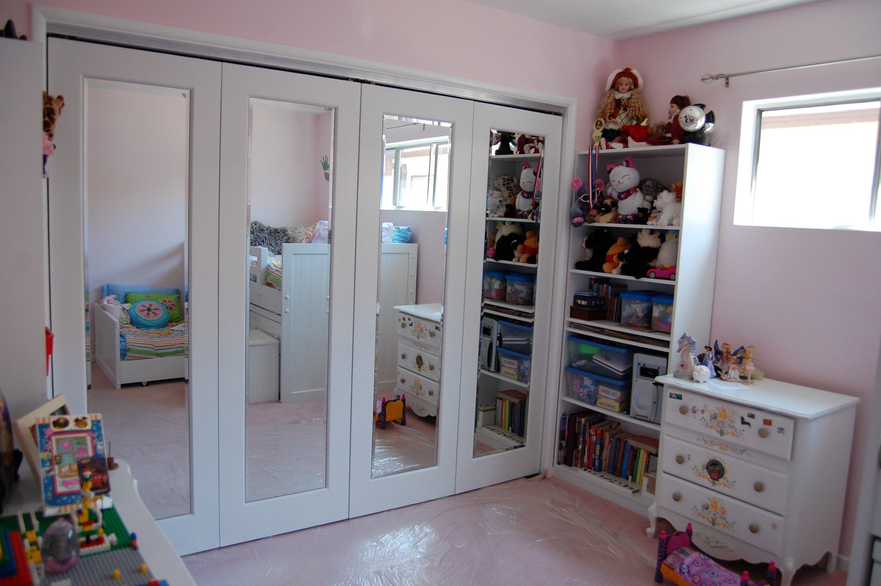 Painted Satin White with 1/2" beveled mirror inserts